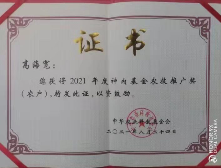2020年8月—11月 通过“职业技能培训”获得高级农艺师证书